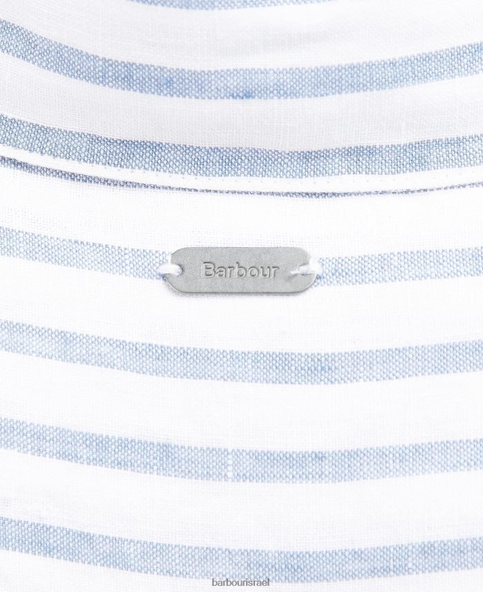 שכבה חיונית לימים חמים יותר, החולצה הימית של Babrour עשויה מפשתן טהור לתחושה יוקרתית ונושם טבעי. חתוכה להתאמה נינוחה עם תפרי צד עמוקים לשכבה קלה, החולצה מעוטרת לכל אורכה בדוגמת פסים עדינה בצבע נייבי, צהוב או ורוד לתיאום ללא מאמץ עם הקולקציות העונתיות שלנו. לוגו ברבור מתכת קטן בחלק האחורי של הצוואר משלים את המראה. גובה הדגם 5'11'', לובש מידה 10