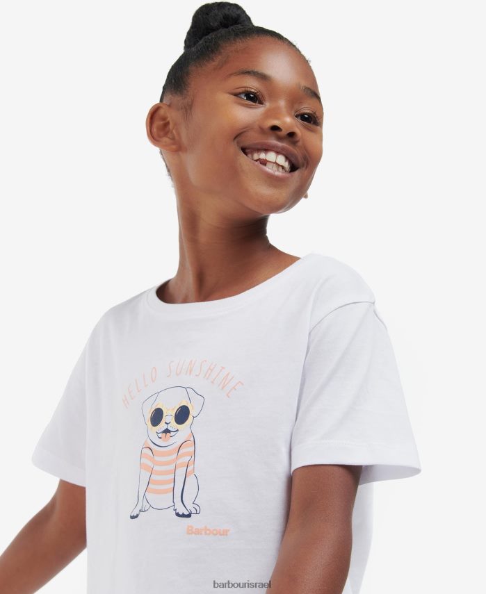 Barbour לבן קלאסי בנות חולצת טריקו של אמה R86Z6X2562 הַלבָּשָׁה