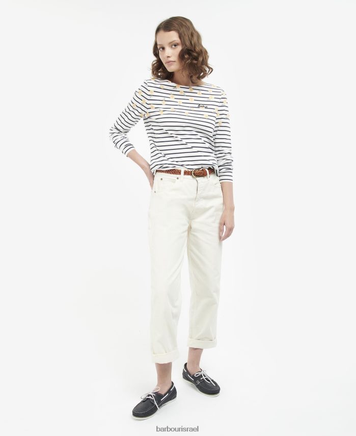 גרסה עכשווית של חולצות מרינר עם פסים קלאסיים, גרסה זו של חולצת הברבור הפופולרית ברדלי מפורטת עם דפוס חוזר וחמוד לחזה ולכתפיים העליון, בהשראת קולקציות החוף והארץ. פסים נייביים, החלק העליון מתהדר במחשוף סירה רחב לצללית מחמיאה. מושלם לשילוב עם מכנסי ג'ינס או צ'ינו למראה מסוגנן ללא מאמץ. גימור זה פשוט עם לוגו רקום קטן על החזה השמאלי. גובה הדגם 5'11'', לובש מידה 10