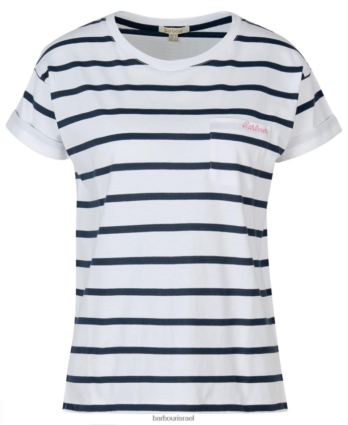 Barbour לבן/היביסקוס נשים חולצת טריקו עם פסים אוטרברן R86Z6X1646 הַלבָּשָׁה