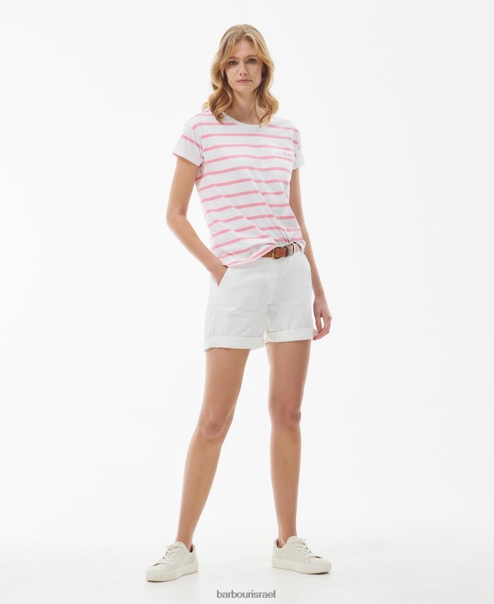 Barbour לבן/היביסקוס נשים חולצת טריקו עם פסים אוטרברן R86Z6X1649 הַלבָּשָׁה