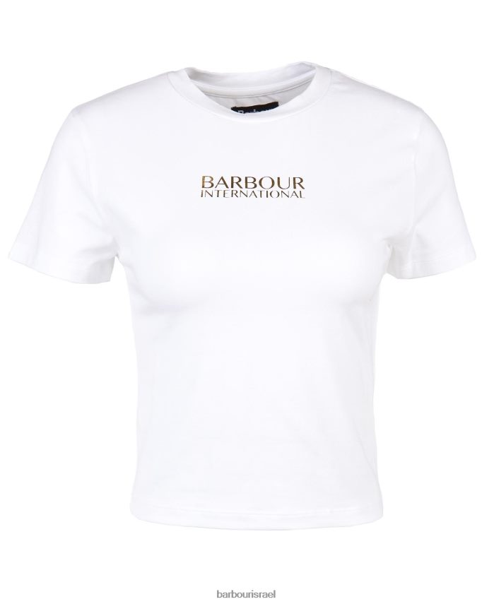 חולצת הטריקו של barbour international claremont חתוכה לעיצוב קצוץ עם הדפס גרפי של הדפס פויל בקדמת החזה.