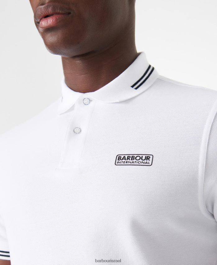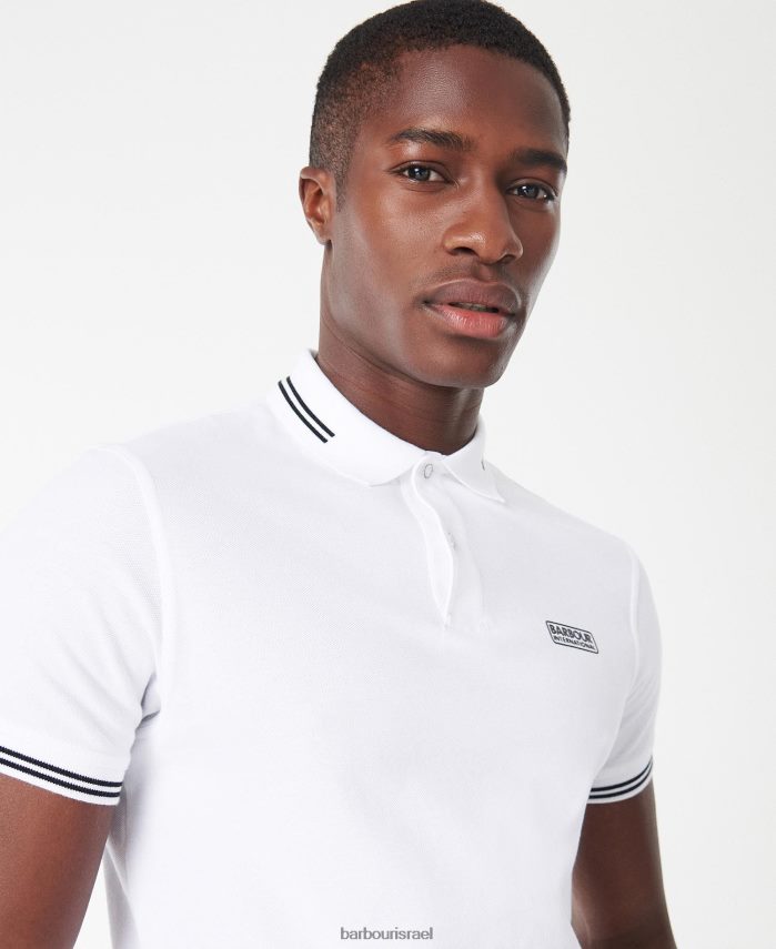 Barbour לבן גברים פולו שירט בינלאומי חיוני עם טיפ R86Z6X571 הַלבָּשָׁה