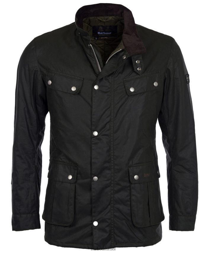 מעיל השעווה של barbour international tourer duke מציע עדכון למעיל השעווה האייקוני של duke עם מיתוג טורר חדש לשרוול. עיבוד זה עשוי מכותנה שעווה חסינת קוצים, עיבוד זה נשאר נאמן לאסתטיקה בהשראת האופנוענים של קודמו, עם טלאים על מרפקים מבד עצמי, שני כיסי מפוח תחתונים, שני כיסי חזה ובטנה מרופדת להגנה נוספת מפני פגעי מזג האוויר.