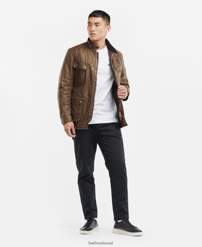 מעיל השעווה של barbour international tourer duke מציע עדכון למעיל השעווה האייקוני של duke עם מיתוג טורר חדש לשרוול. עיבוד זה עשוי מכותנה שעווה חסינת קוצים, עיבוד זה נשאר נאמן לאסתטיקה בהשראת האופנוענים של קודמו, עם טלאים על מרפקים מבד עצמי, שני כיסי מפוח תחתונים, שני כיסי חזה ובטנה מרופדת להגנה נוספת מפני פגעי מזג האוויר.