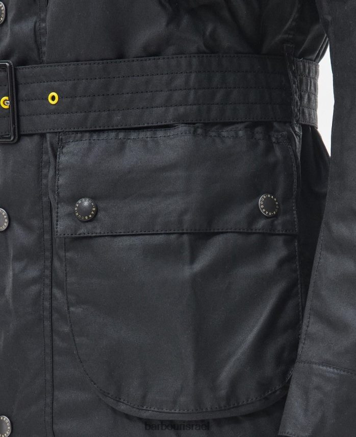 גרסה מודרנית זו של מעיל האופנוענים הבינלאומי המהולל של ברבור מעדכנת את המראה הקלאסי עם גזרה דקיקה צעירה. ז'קט ה-Barbour international a7 האייקוני נוצר בשנת 1936, והפך לז'קט האופנוענים המועדף בשנות ה-50, ה-60 וה-70. מהדורה מודרנית זו שומרת על הפונקציונליות החזקה של המקור, וכוללת כיסוי חיצוני מכותנה בשעווה, רוכסן קדמי עם זבוב סערה עם ניטים ובטנת ברבור עמידה מכותנה. העיצוב המיוחד כולל את צווארון המשפך עם רצועת גרון מהודקת אבזם, חגורת מותן וארבעה כיסים חיצוניים - אחד מהם הוא "כיס המפה" הזוויתי של האופנוען, שתוכנן במקור כדי לתת גישה קלה בזמן הרכיבה. מיתוג חיצוני חוגג את פלטת הצבעים המפורסמת של ברבור אינטרנשיונל בשחור וצהוב עם ניטים דו-גווניים, עיניות צהובות ותג שרוול מודגש.